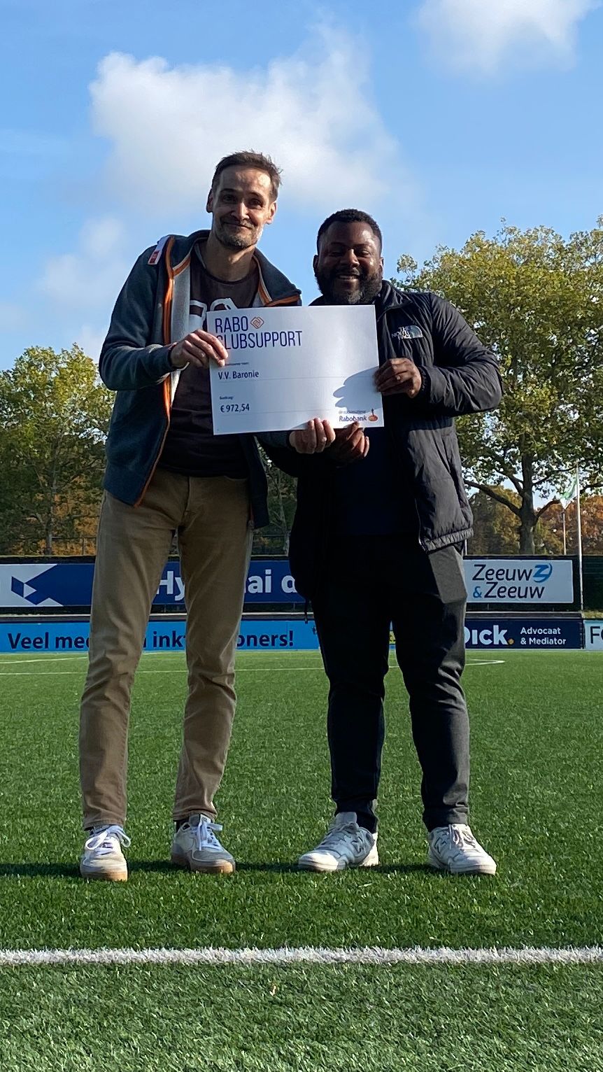 Bedankt aan alle leden van Baronie die hebben gestemd via Rabo CLub Support op VV Baronie. Dankzij jullie steun heeft dit de vereniging 972,54 euro opgeleverd. Vrijdag 10 oktober is de cheque door de Rabobank uitgereikt aan de penningmeester.
