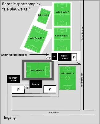 Het ligt midden in de wijk Blauwe Kei. Het sportpark heeft alles wat een voetballer nodig heeft: 5 velden (3 kunstgras, klik hier voor de regels), een hoek voor mini-pupillen, 10 kleedkamers, een sponsorhome met fysioruimte en een gezellige kantine onder de overdekte tribune van het hoofdveld.